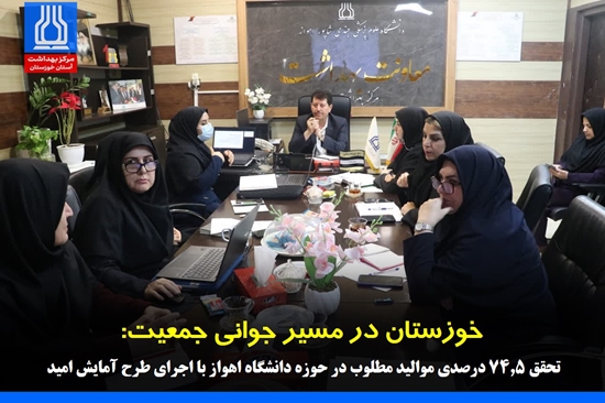 معاون بهداشت دانشگاه علوم پزشکی اهواز اعلام کرد: درصد تحقق موالید مطلوب در شش ماهه اول ۱۴۰۴ در این دانشگاه ۷۴.۵ درصد بوده و با اهتمام بیشتر نیروهای بهداشت، انتظار می‌رود این شاخص در ماه‌های آتی بهبود یابد.