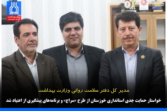 مدیر کل دفتر سلامت روانی وزارت بهداشت خواستار حمایت جدی استانداری خوزستان از طرح «سراج» و برنامه‌های پیشگیری از اعتیاد شد